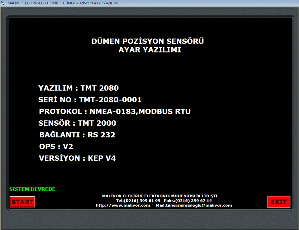 TMT 2000 Dümen pozisyon sensörünün ölçtüğü anlık değeri,ölçeceği maksimum değeri ve analog çıkışlarının kalibrasyonlarının yapılmasında,Cihazın bilgisayar yardımı ile yapılandırılmasını,farklı platformlara kurulması aşamasında sabit açısal değerlerin uygulanmasına olanak sağlar ve  kullanılır. PC tabanlı yazılımlar müşteriye özel olarak yapılmaktadır, isteğe bağlı olarak PC tabanlı birkaçyazılım paketi vardır.Genelde, TMT 2000 Dümen pozisyon sensörü, konfigirasyon yazılımı ile birlikte entegre edilir.Yazılım paketleri, trend analizleri üretmek, matematiksel hesaplamalar için herhangi bir operatörü uyarmak maksadıyla kullanılabilir. konfigirasyon yazılım paketi ,Çevresel izleme sistemi ve genel izleme sistemi yazılımı olarak iki çeşittir.TMT 2080 Konfigürasyon yazılımı sayesinde ; TMT 2000 sensörünün rod boyunun anlık değerini ve +/-  0-20 ma analog çıkış değerlerini kullanıcıya sunar. Ölçüm mesafesi bölümünden ölçülecek mesafe ayarlaması yapılabilir.İstenilen değer girildikten sonra SET tuşuna basarak sistem kalibrasyonu tamamlanır.Çıkış değerleri yeni girilen değere göre kendini otomatik olarak orantı hale getirir. TMT 2000 Konfigürasyon yazılımı orijinal yazılım CD si içerisinde bulunmaktadır. TMT 2000 Konfigürasyon Yazılımı veri değerlerini TSS1/DMS Protokolu aracılığı ile gönderir.NMEA-0183 VE MODBUS veri çıkışları istenildiği takdirde aktif edilebilir.